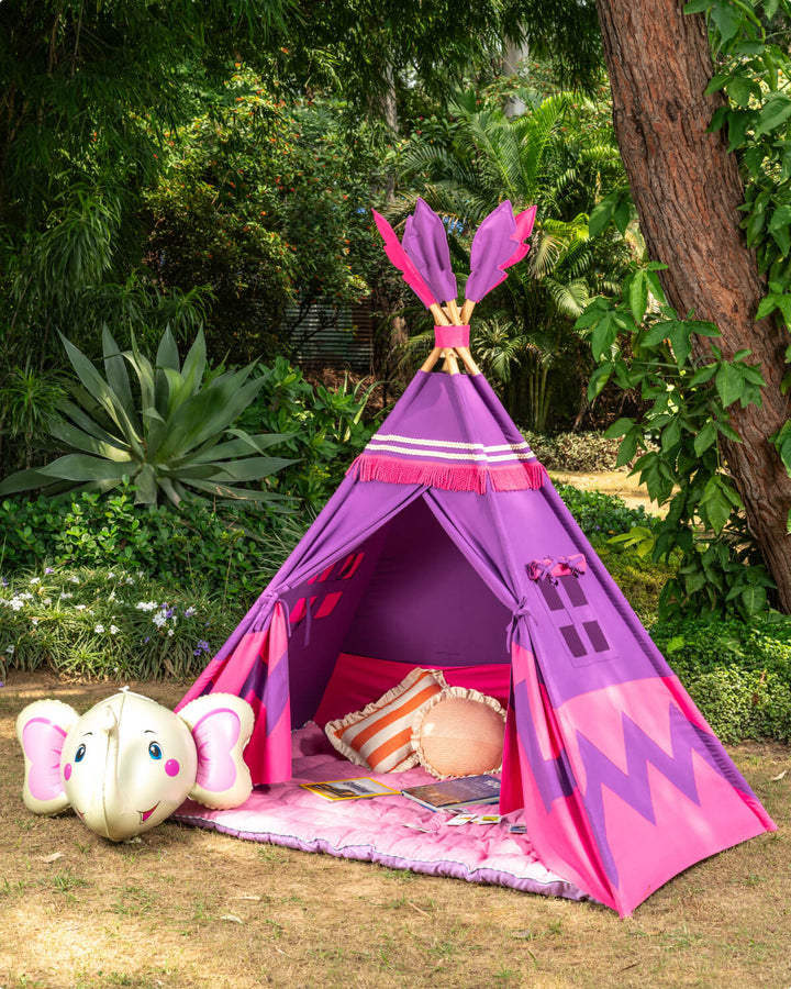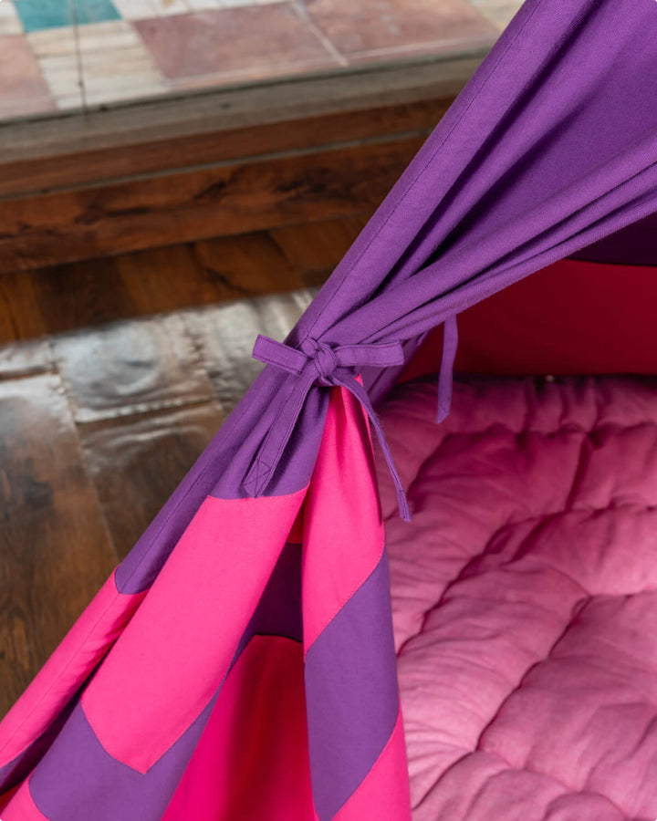 Draped in rich berry shades, this elevated retreat brings chic charm to every play corner.