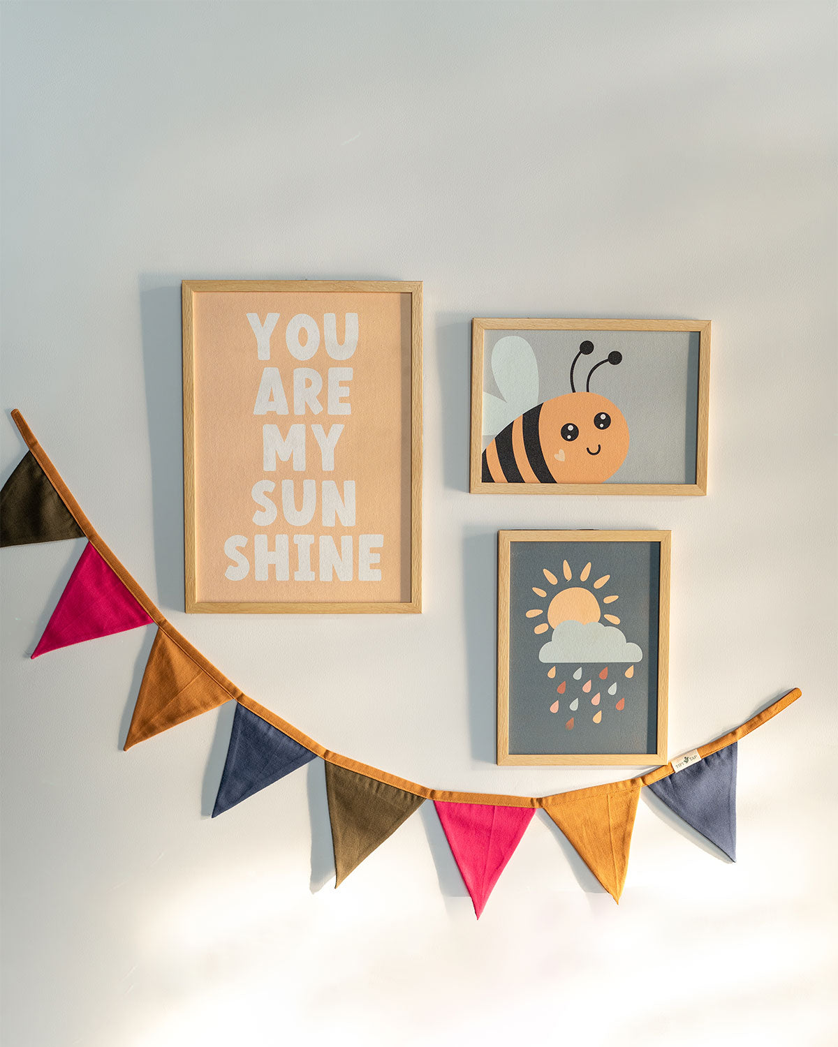 The Mini Magic Edit effortlessly elevates your child’s space with three animated canvas prints, thoughtfully finished and paired with a playful bunting for a perfectly styled look.